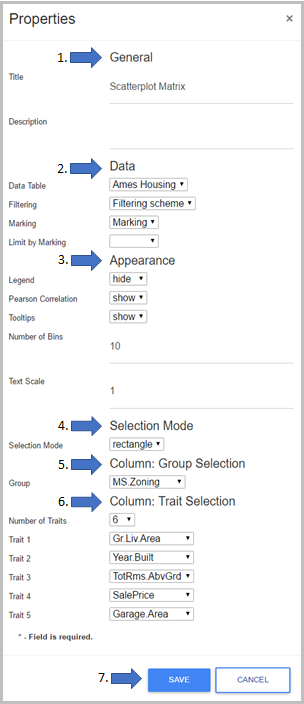 The purpose of this article is to explain the properties menu inside Scatterplot Matrix