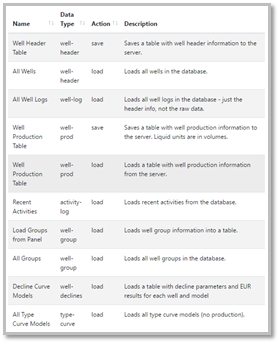The Action menu allows you to load and save data to and from the Petro.ai DB via predefined functions. Once a function is defined it can be refreshed, which will load or save new data to/from the Petro.ai DB.